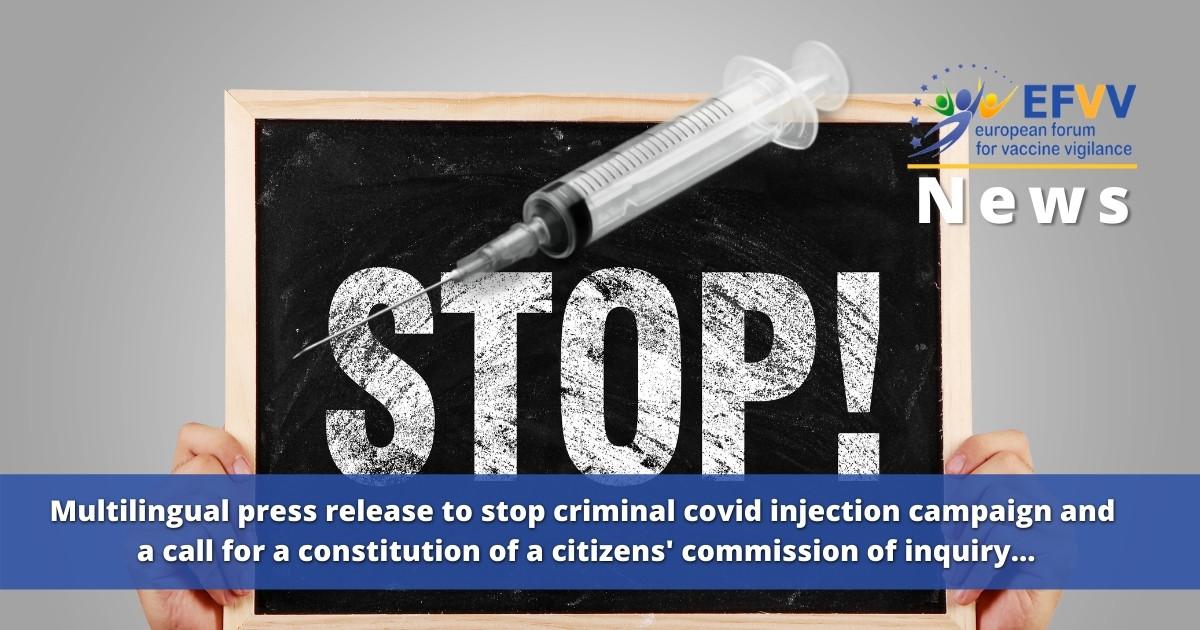 Under the aegis of the European Forum for Vaccine Vigilance (EFVV) and during the first meeting in Paris and by teleconference of the International and French Scientific Council for Evaluation of Covid-19 Policies, a group of scientists, lawyers, intellectuals, health care professionals, officials and citizens unanimously adopted a motion to create an International Citizens’ Inquiry Commission.